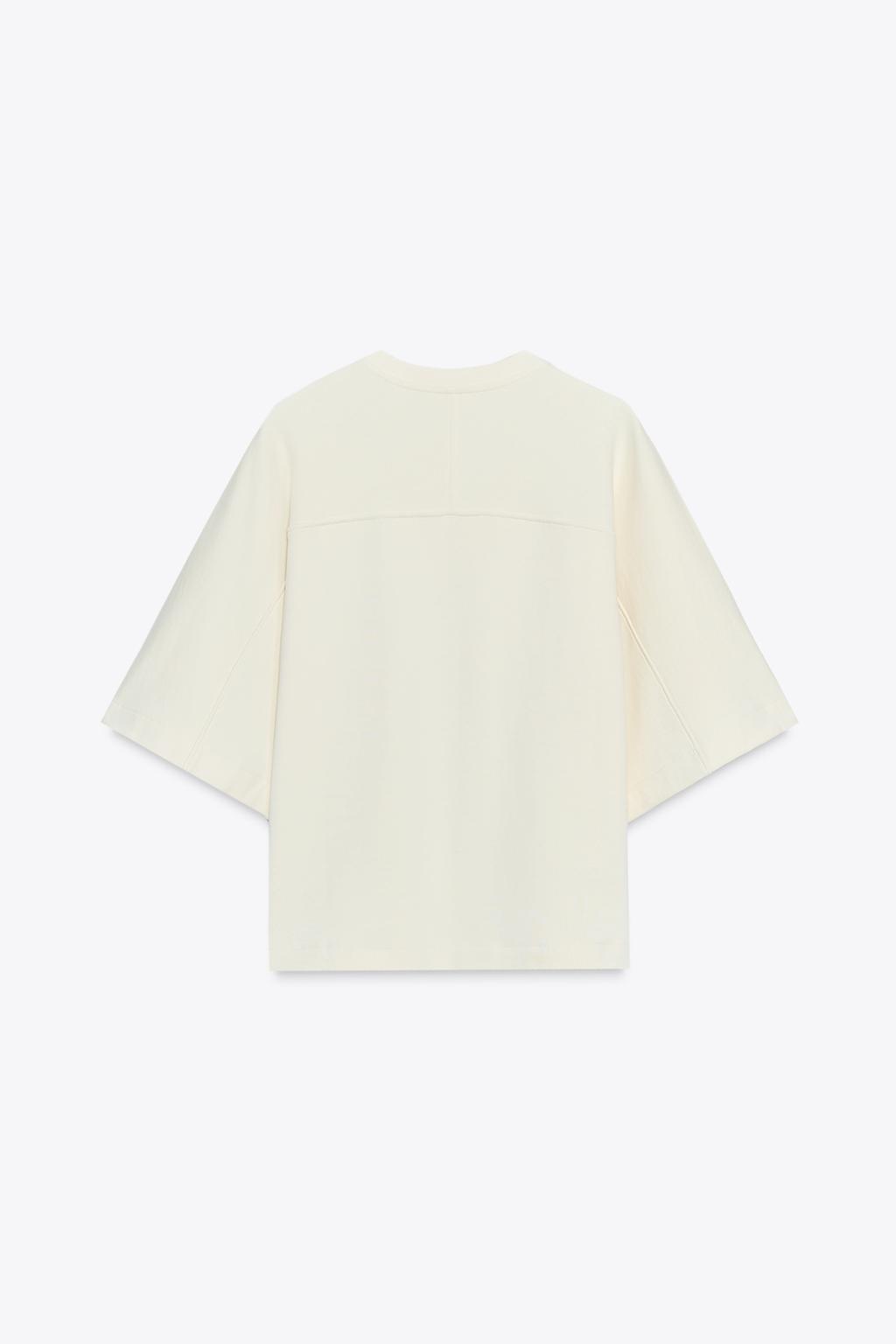 Ecru | Sweatshirt made of spun cotton. Featuring a round neck and short sleeves.